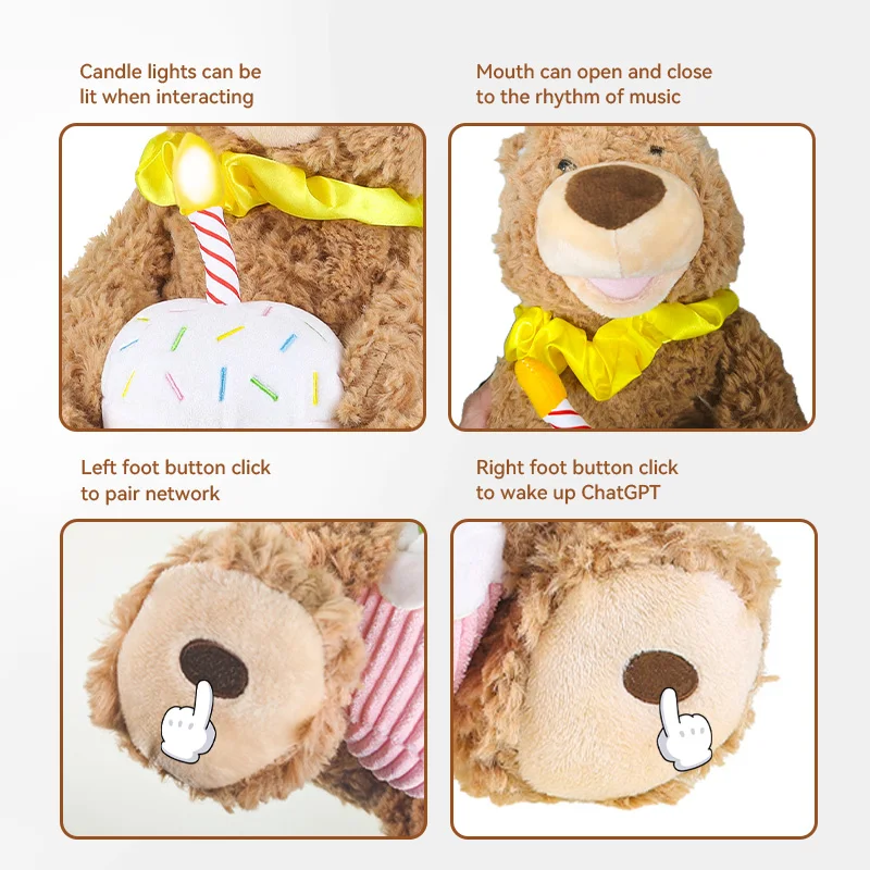AI Interaktivni Robot Meda u braon boji sa kapicom i tortom za rodjendan