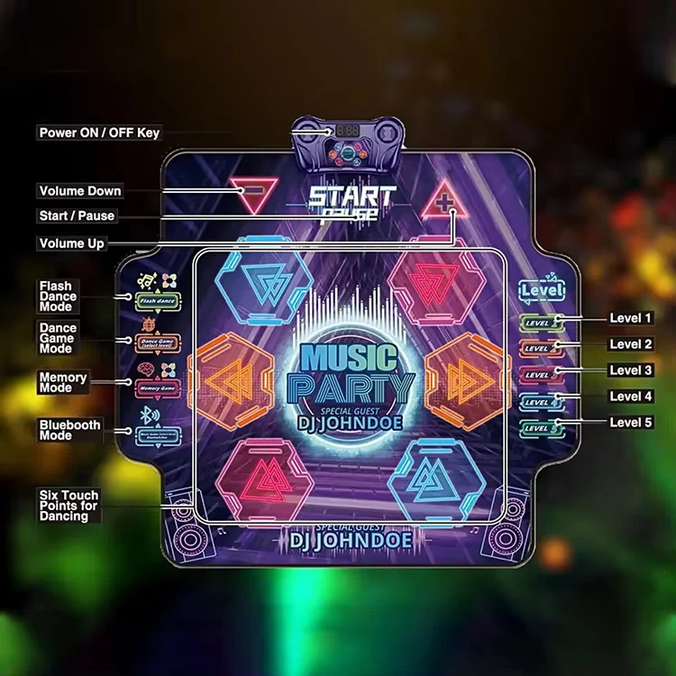 Bežična muzička plesna podloga pretvara svaku igru u ritmičnu avanturu. Deca mogu birati između 5 različitih režima igranja – od slobodnog plesa do izazovnih muzičkih partija. Svaki korak aktivira LED svetla i muzičke tonove, stvarajući šarenu i veselu atmosferu koja oduševljava sve uzraste.
