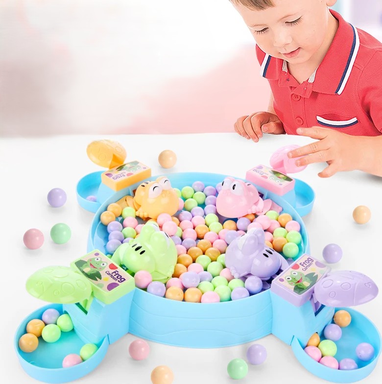 Dečija igračka žaba sa perlicama funkcioniše tako što deca „hranom“ ubacuju šarene perlice u usta gladne žabe, razvijajući strpljenje i preciznost. Svaki ulovljeni „zalogaj“ donosi osmeh i dodatno motiviše mališane da vežbaju finu motoriku.