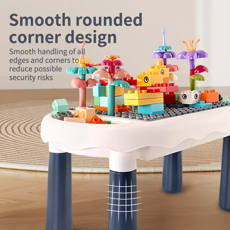 Sto i kockice izrađeni su od bezbedne, netoksične plastike, sa zaobljenim ivicama i čvrstom konstrukcijom. Sve komponente su lagane, lako se čiste i idealne za decu od 3 godine naviše.