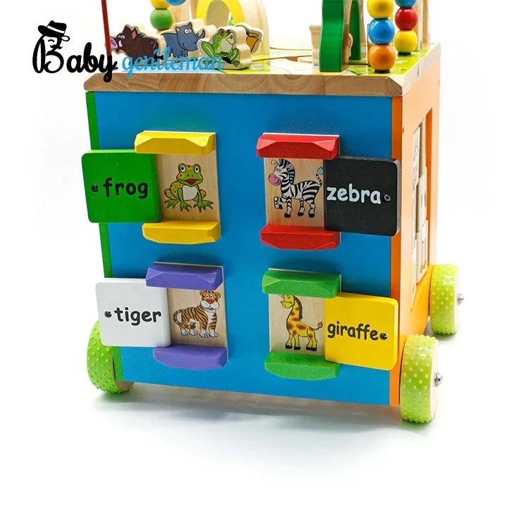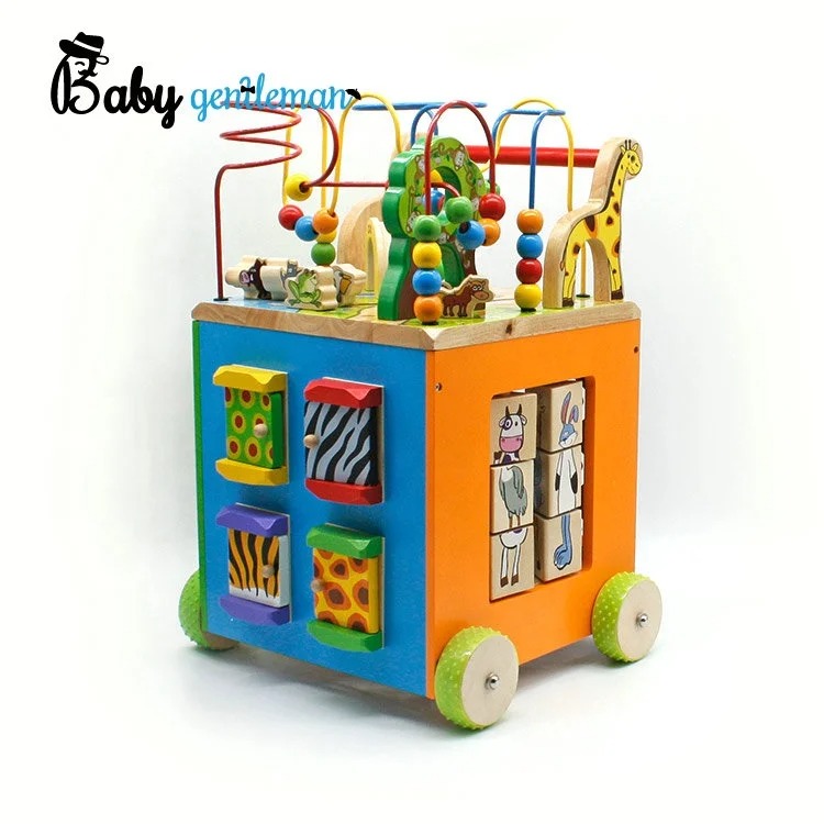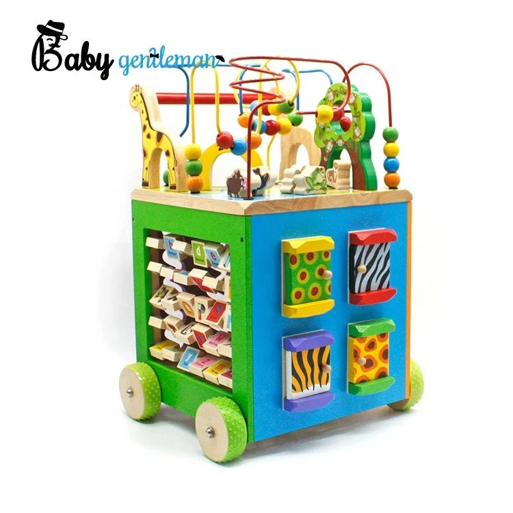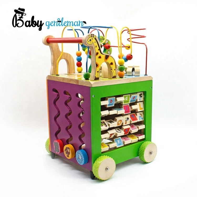 Drvena edukativna guralica za bebe – hodalica sa aktivnostima (busy board)