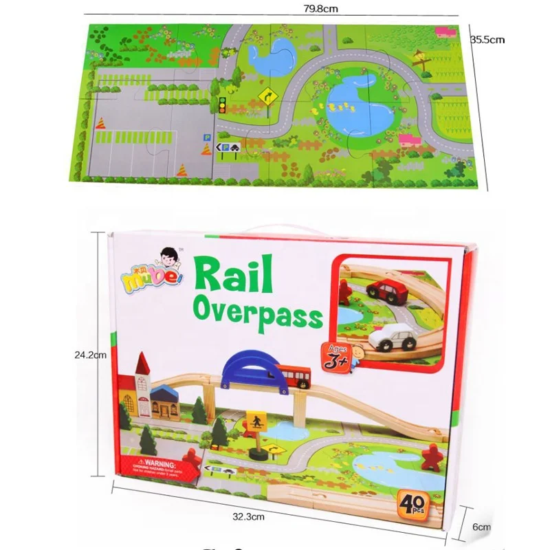 Drvena železnička pruga je kompatibilna sa većinom poznatih drvenih setova (kao što su Brio, Ikea ili Thomas), što znači da dete može kombinovati različite elemente i stvarati sve veće i maštovitije železničke svetove.