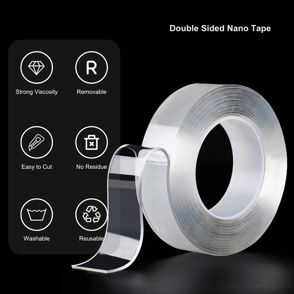 Dvostrano Lepljiva Nano Traka – Providna, Višekratna i Periva, 3m – Univerzalna Za Kuću, Kancelariju i Auto