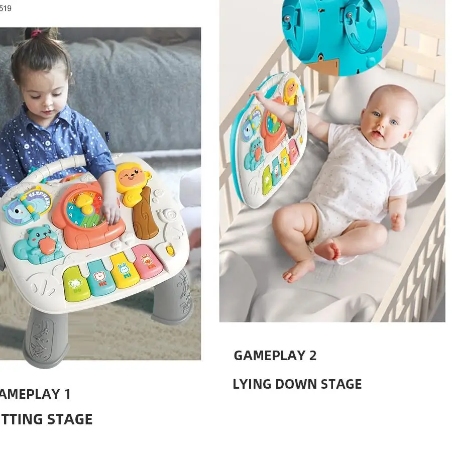 Osim toga, muzikalne igre i stimulativni svetlosni efekti pomažu detetu da razvije osećaj za ritam, a dodavanje zvučnih efekata omogućava detetu da prepozna razne zvuke, što doprinosi razvoju njihovog sluha.