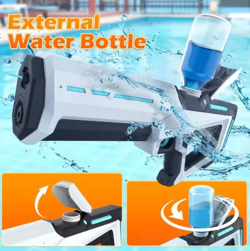 Opremljen naprednim električnim mehanizmom, ovaj pištolj na vodu sa baterijom omogućava brzo i lako pucanje bez potrebe za ručnim pumpanjem. Dovoljno je napuniti rezervoar, uključiti bateriju i akcija može da počne! Idealan je za duge igre jer troši minimalno vode, a daje maksimalan pritisak.