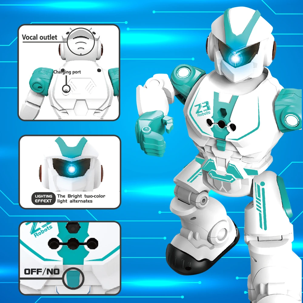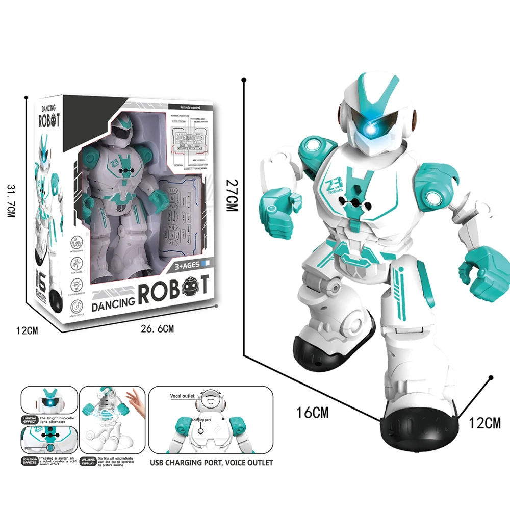 Robot dolazi sa daljinskim upravljačem koji omogućava lako kontrolisanje njegovih pokreta. Može da hoda napred i nazad, pleše uz muziku, reaguje na gestove ruku i čak imitira pokrete. Kada mu se da komanda – on odgovara svetlosnim i zvučnim efektima, što ga čini neverovatno interaktivnim i zabavnim.