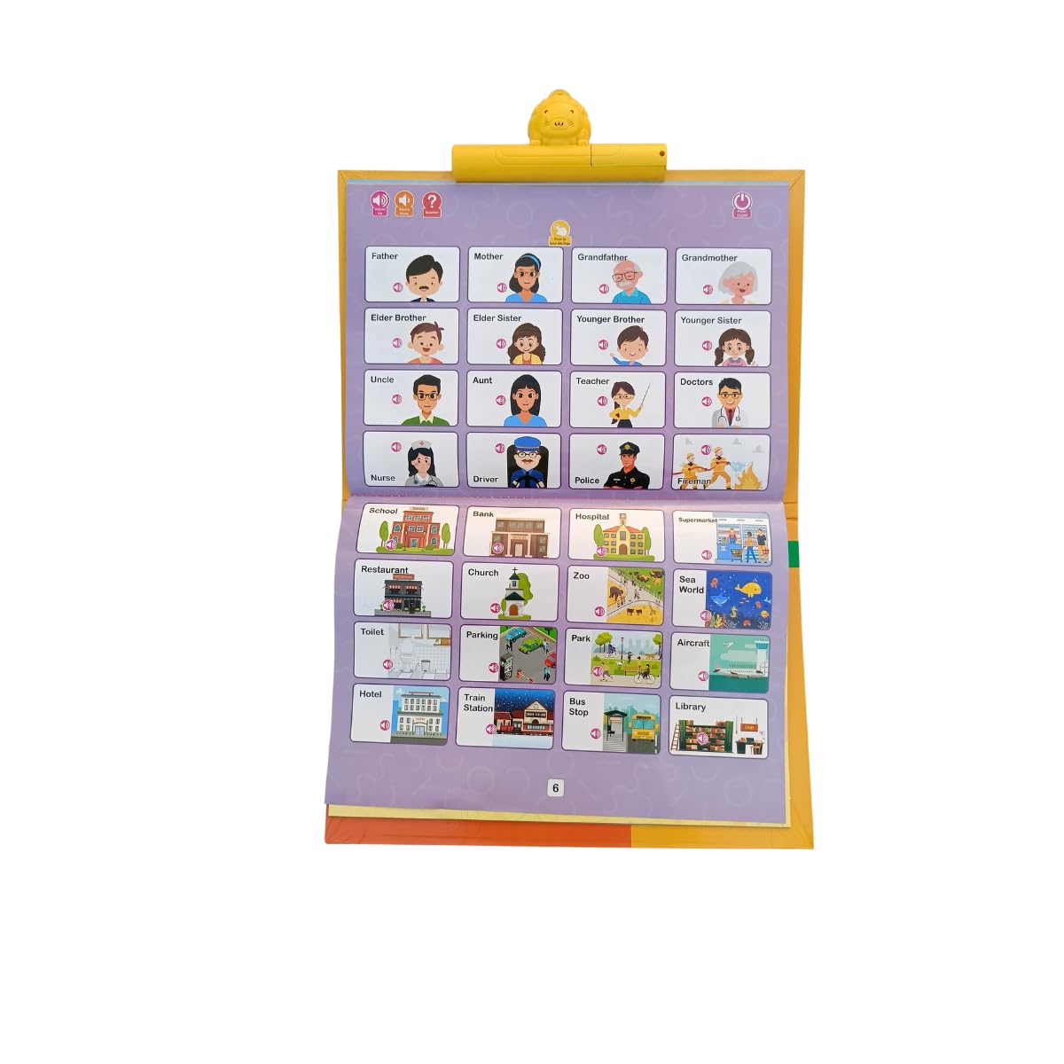 Interaktivna knjiga za učenje za decu podržava najvažnije faze ranog razvoja — govor, sluh, logičko razmišljanje i vizuelnu memoriju. Pomaže deci da kroz igru usvajaju nova znanja bez napora.