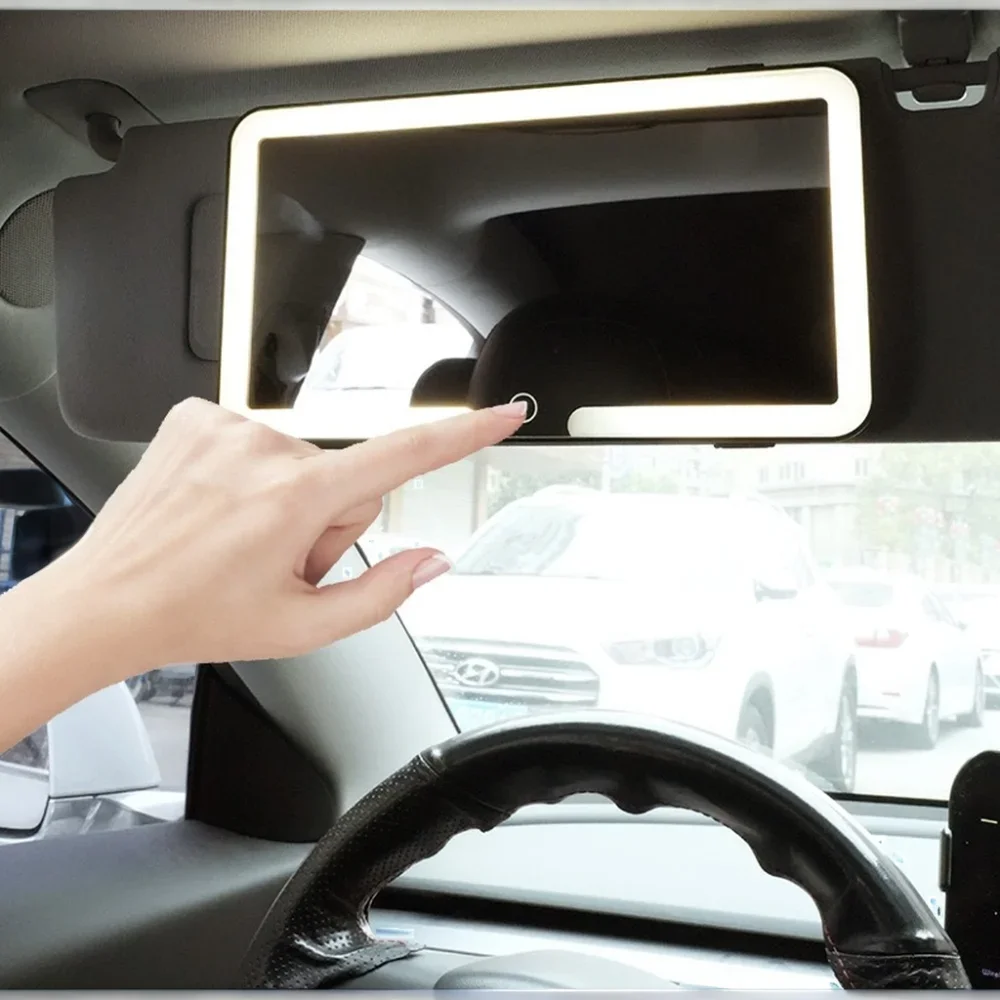 Elegantno i praktično ogledalo za auto sa LED osvetljenjem koje se lako postavlja na suncobran. Idealan dodatak za brzo sređivanje u vožnji – ima 3 režima svetla i USB punjivu bateriju, univerzalno odgovara svim modelima automobila.