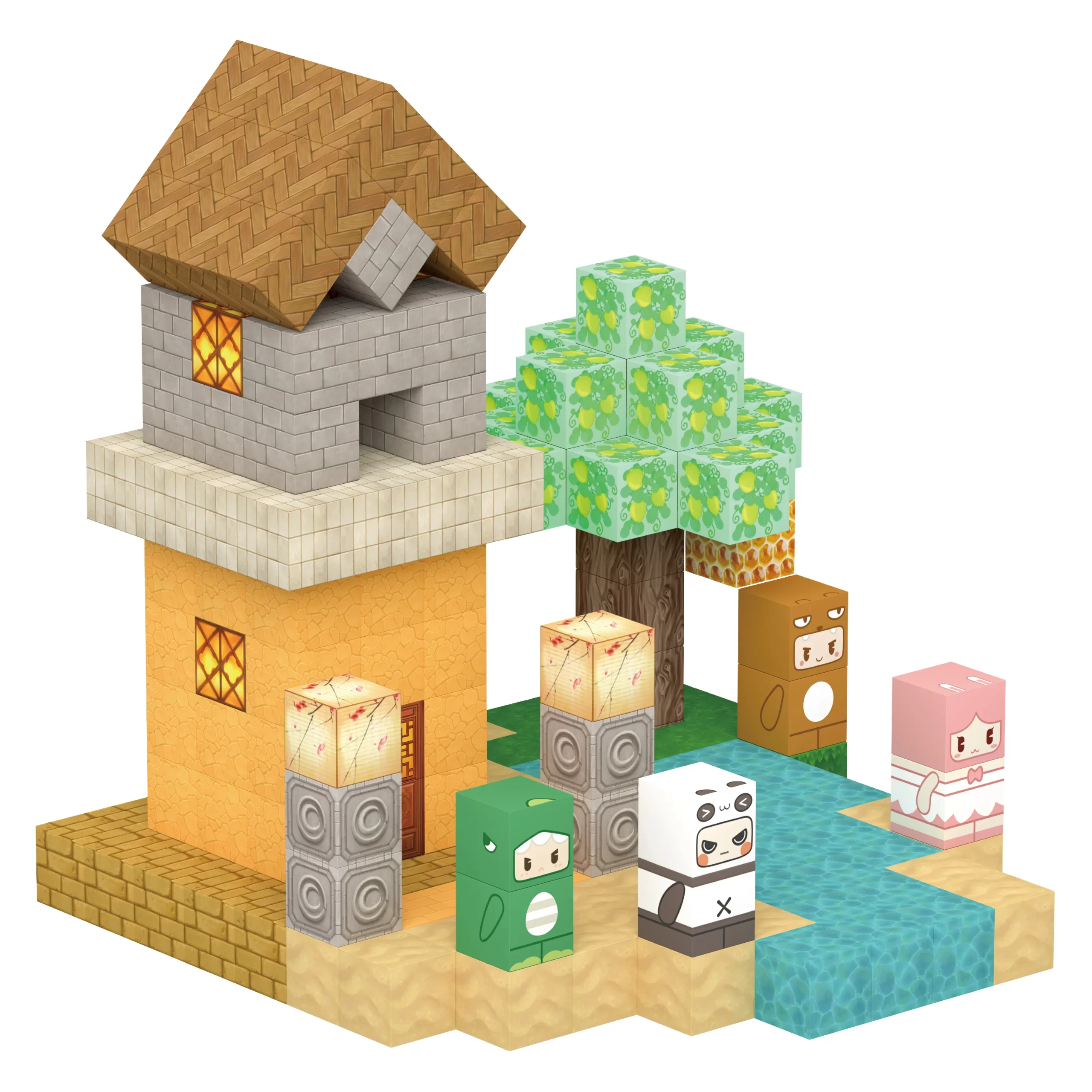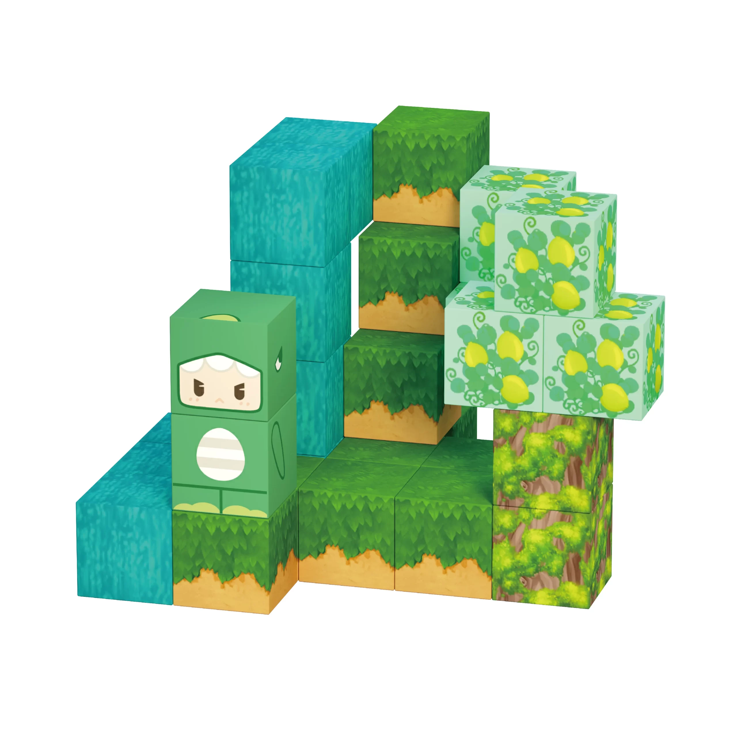 Zahvaljujući ugrađenim magnetima, kocke se lako povezuju i omogućavaju pravljenje različitih oblika i konstrukcija.