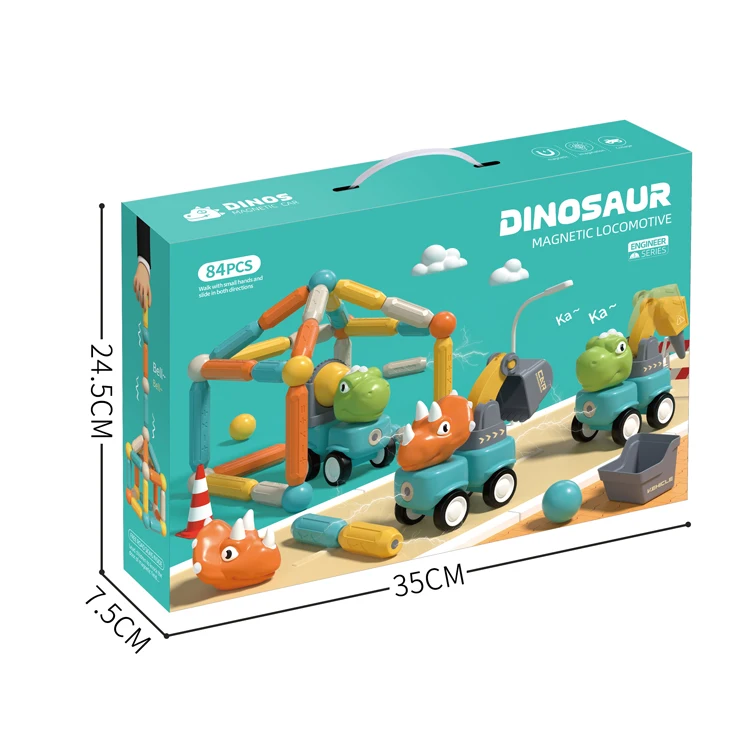 Ovaj magnetni set kocki sa dinosaurusima i vozilima za decu podstiče maštu, kreativnost i logičko razmišljanje kod mališana. Uz kombinaciju magnetnih štapića, kuglica i delova vozila, deca mogu da kreiraju beskonačne oblike – od dinosaurusa do kamiona i tornjeva!