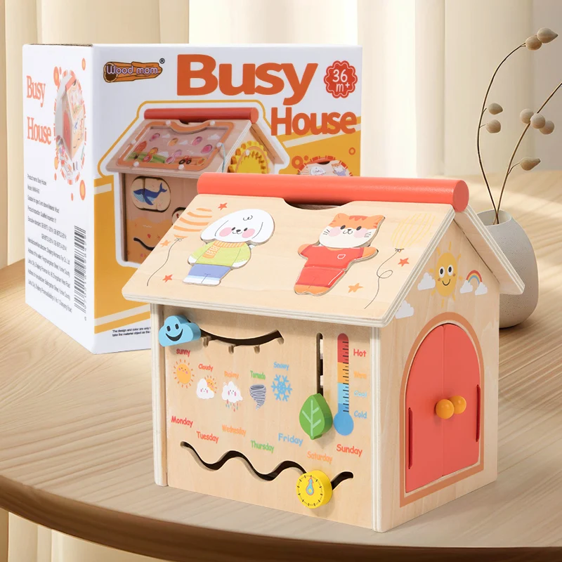 Kućica je izrađena od kvalitetnog drveta, sa nežnim ivicama i netoksičnim bojama, što garantuje sigurnu igru. Deca mogu sami da sklapaju, otvaraju i istražuju različite delove kućice, što ih podstiče na razmišljanje i rešavanje problema.