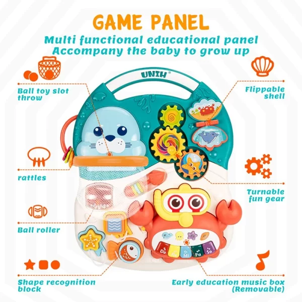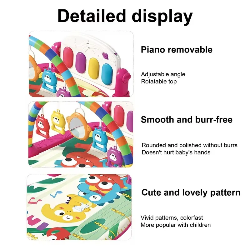 Ova mekana aktivna podloga sa dinosaurus motivom osmišljena je da pruži savršeno okruženje za igru na stomaku i rani razvoj beba. Sa klavijaturom i čak pet različitih senzornih igračaka, predstavlja kompletan edukativni set koji podstiče razvoj motorike, sluha, vida i koordinacije.