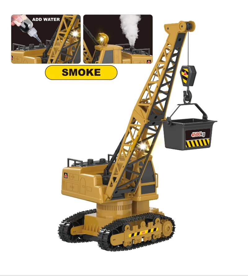 RC građevinska dizalica igračka – 2.4G daljinski bager i toranjska dizalica sa svetlom i dimnim efektom