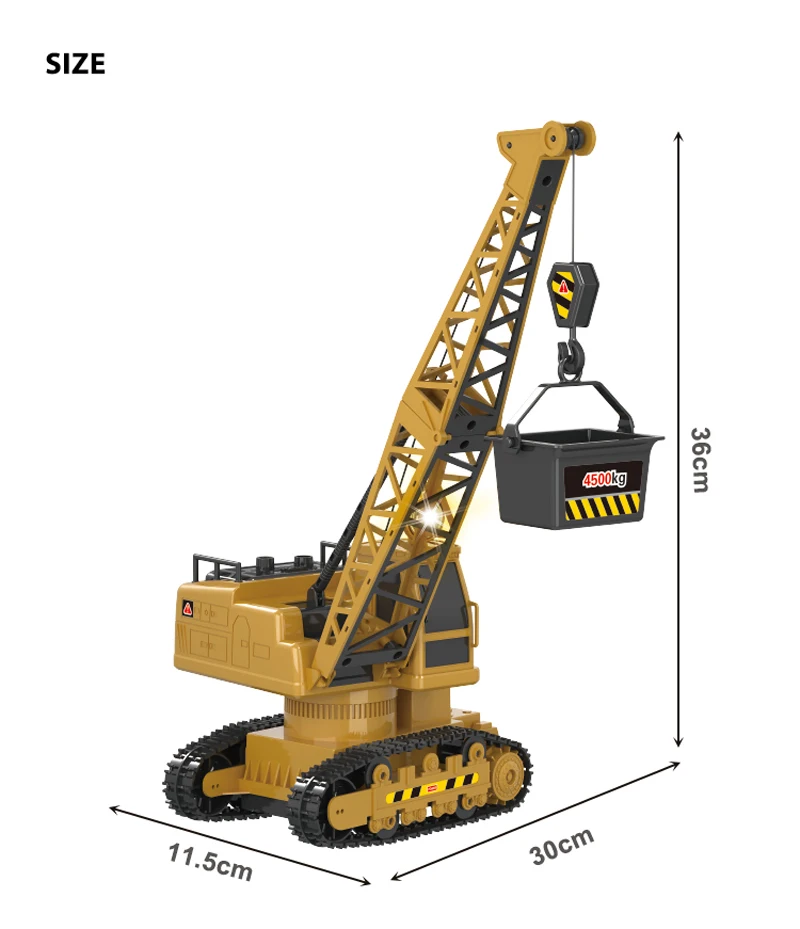 RC građevinska dizalica je profesionalno dizajnirana igračka za decu koja vole građevinske mašine i realistične RC modele. Set kombinuje toranjsku dizalicu, bager i efekte svetla i dima, pa igra izgleda kao prava mala gradilišna akcija.