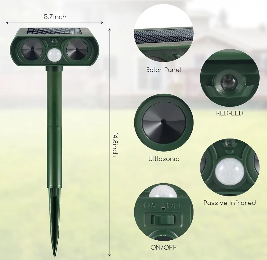 Uređaj emituje zvučne i svetlosne signale koji stvaraju nelagodnost kod životinja, podstičući ih da se udalje bez nanošenja štete. Zahvaljujući senzoru pokreta, aktivira se samo kada je potrebno, što dodatno štedi energiju.