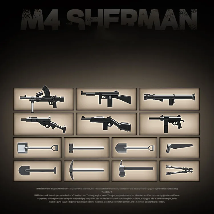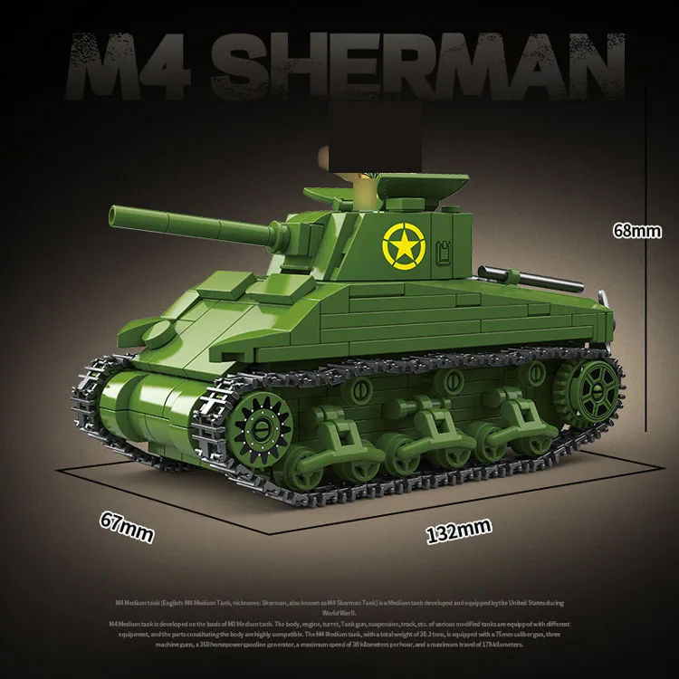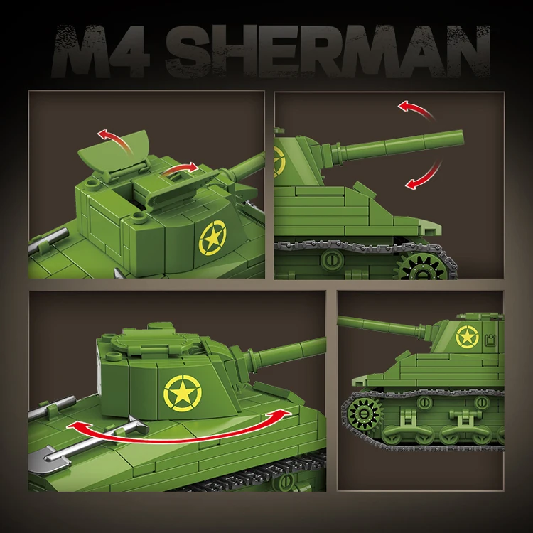 Uz ovaj set, deca mogu da naprave sopstveni vojni tenk M4 Šerman, inspirisan poznatim modelima iz istorije. Set sadrži 480 čvrstih plastičnih delova, izrađenih od bezbednog i ekološkog materijala, koji se lako spajaju i razdvajaju.