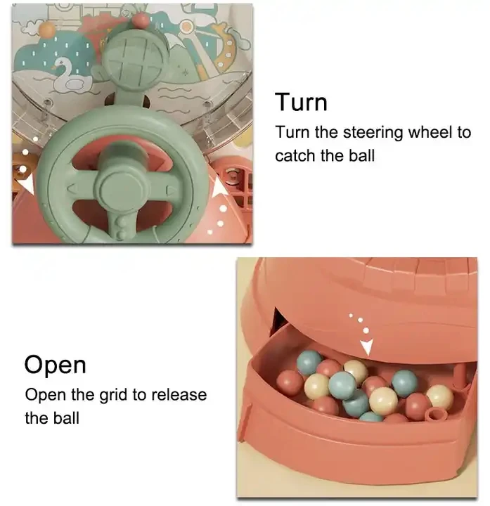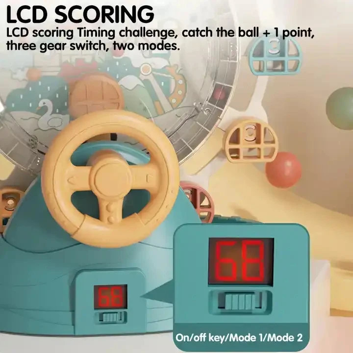 Ova edukativna igračka zasnovana je na sistemu šarenog točka koji rotira kuglice i usmerava ih kroz male otvore. Cilj deteta je da prati kuglice, reaguje na vreme i uhvati ih na pravom mestu. To zahteva fokus i brzu koordinaciju pokreta, što čini igru idealnom za razvoj kognitivnih veština.