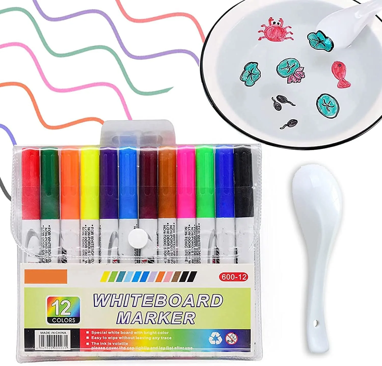 Flomaster je izrađen od netoksičnih i sigurnih materijala, prilagođen deci. Lako se briše i ne ostavlja tragove na površinama kada se pravilno koristi. Najbolje rezultate daje na glatkim površinama kao što su porcelanske činije, tanjiri, staklene ploče ili pločice.